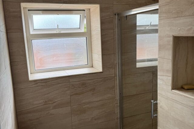 Stylish new family bathroom with walk-in shower