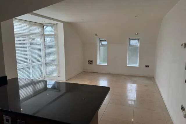 The flat comprises an open plan kitchen living area with kitchen appliances included. One double bedroom, a master bedroom with an en-suite. A family bathroom finished to a high standard with modern fittings. The flat comes with ample parking space in the car park and on the street.