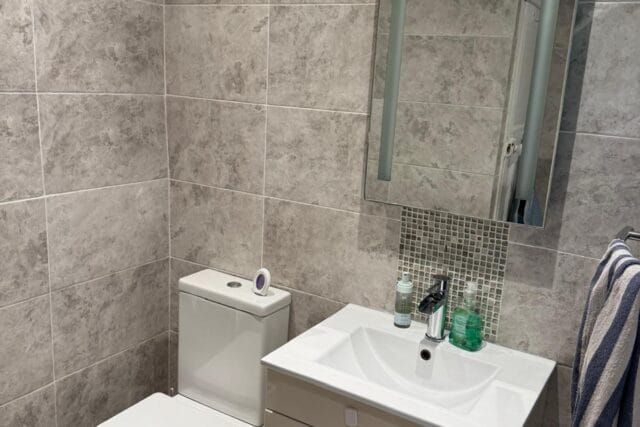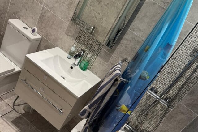 - A clean and modern family bathroom