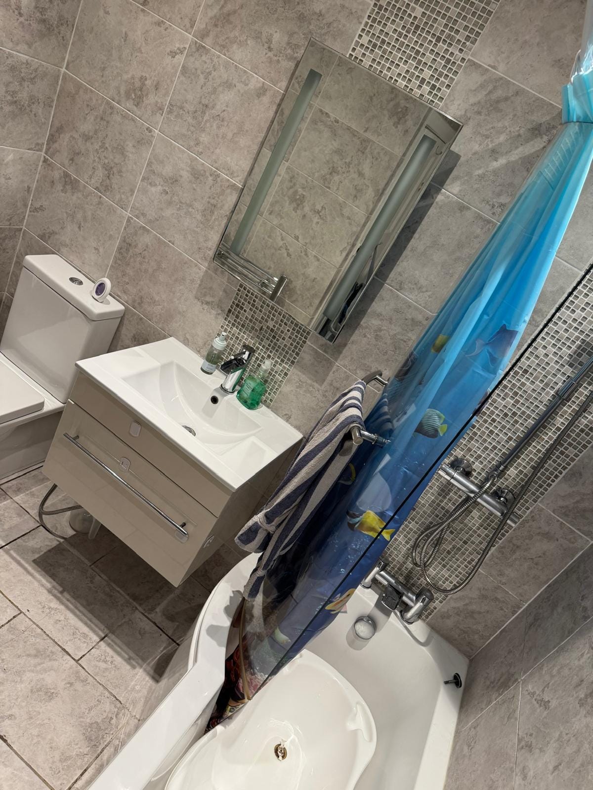 - A clean and modern family bathroom